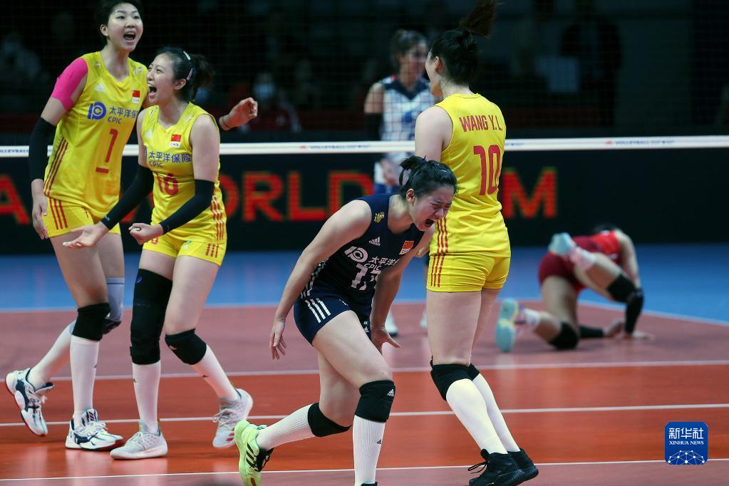 6月5日,中国队球员在比赛中庆祝得分。新华社发(穆斯塔法·卡亚摄)