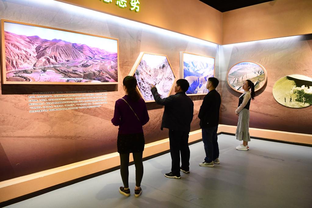 观众在延安市吴起县退耕还林展览馆内参观。新华社记者 邵瑞 摄