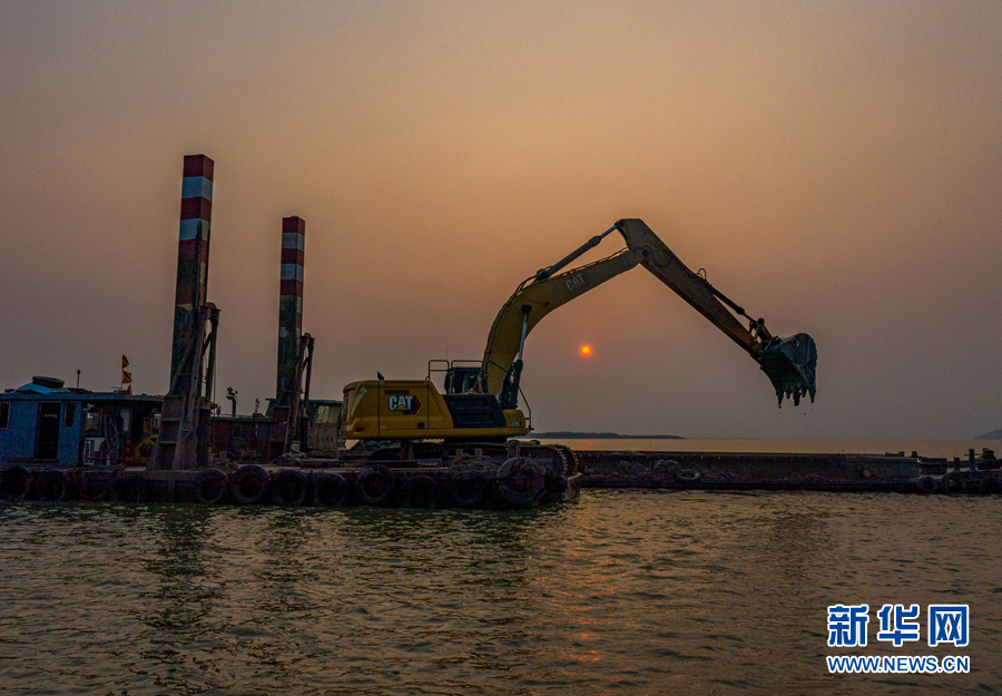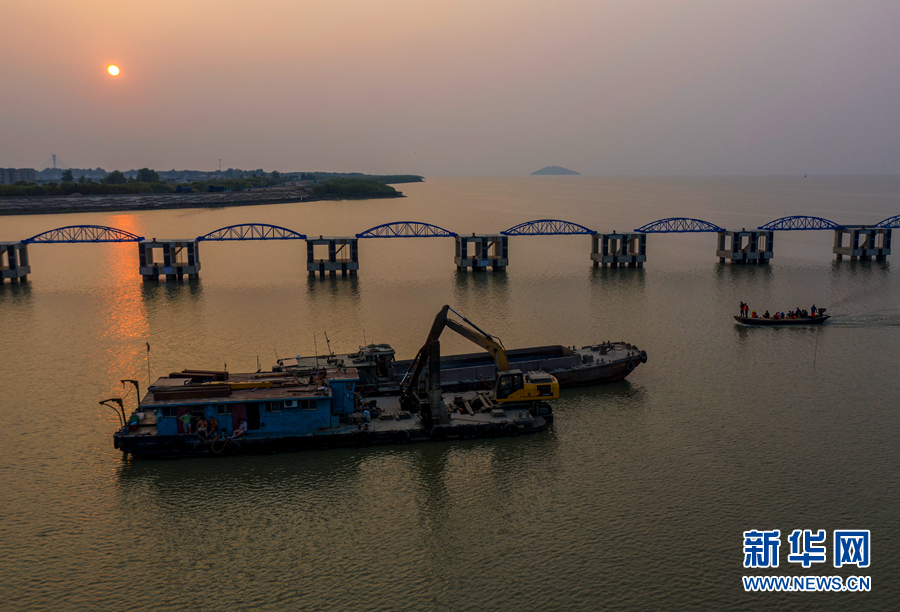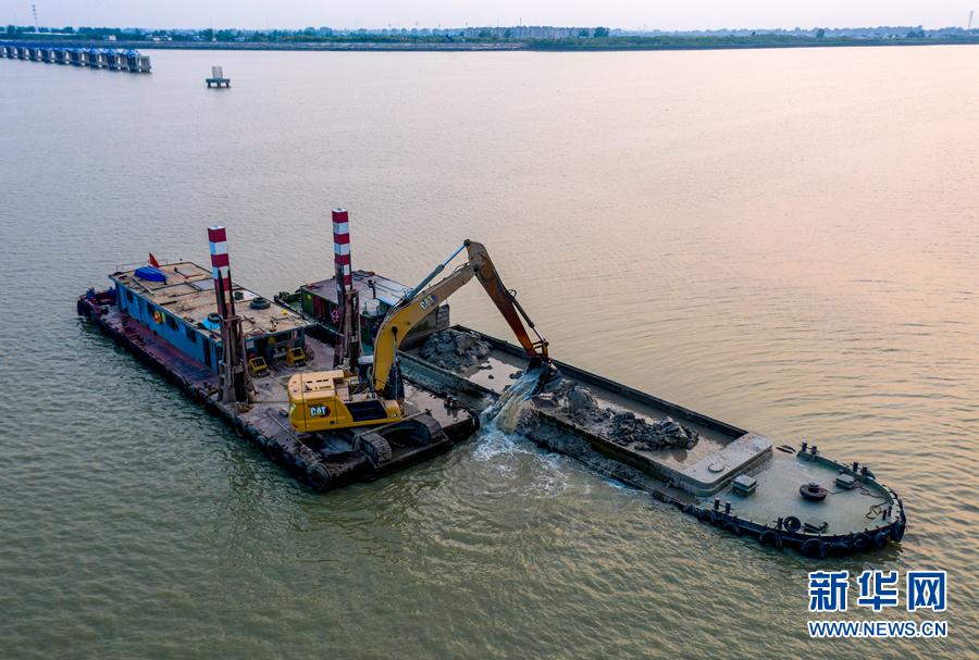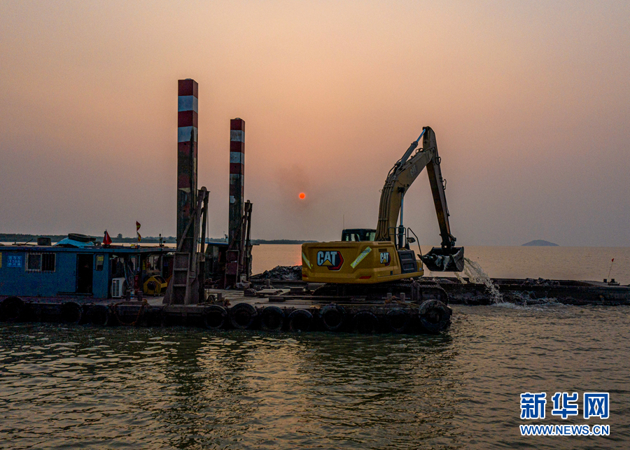 日前,位于安徽省合肥市庐江县白山镇境内的引江济淮巢湖入湖口工程现场,建设者们正在进行航道拓宽清淤。