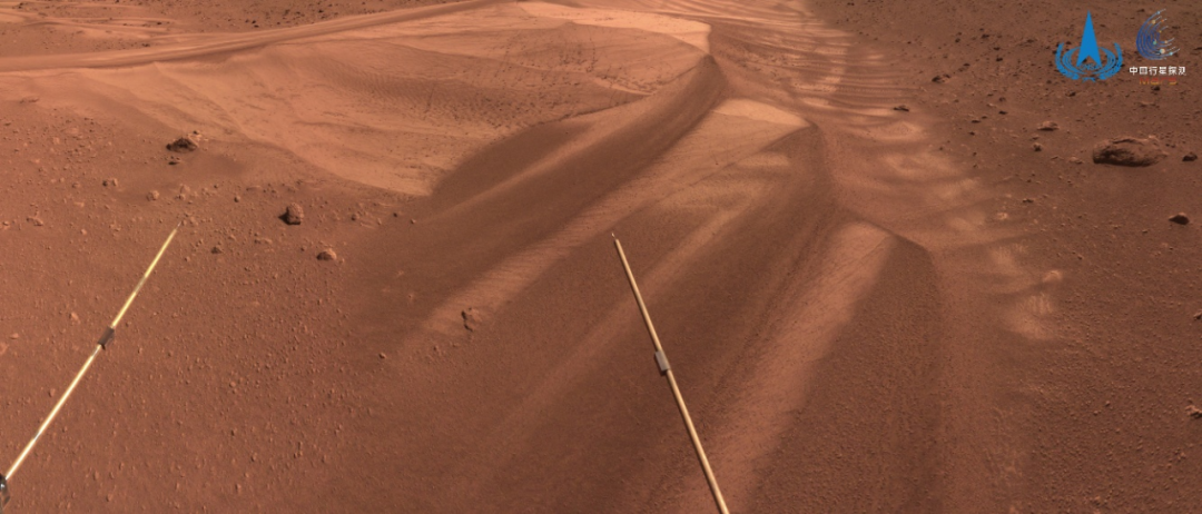 图6 祝融号拍摄巡视区影像,图像为火星车进入冬季休眠状态前拍摄,展示了巡视区域一处沙丘地貌的局部特征。