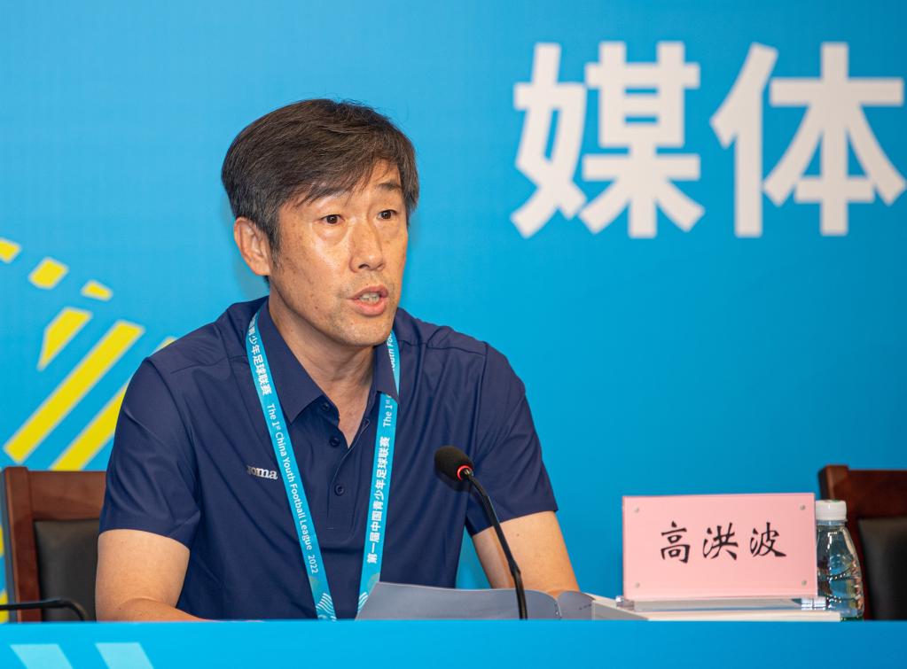 7月10日,高洪波在第一届中国青少年足球联赛媒体通气会上。新华社记者江汉摄