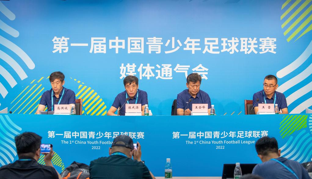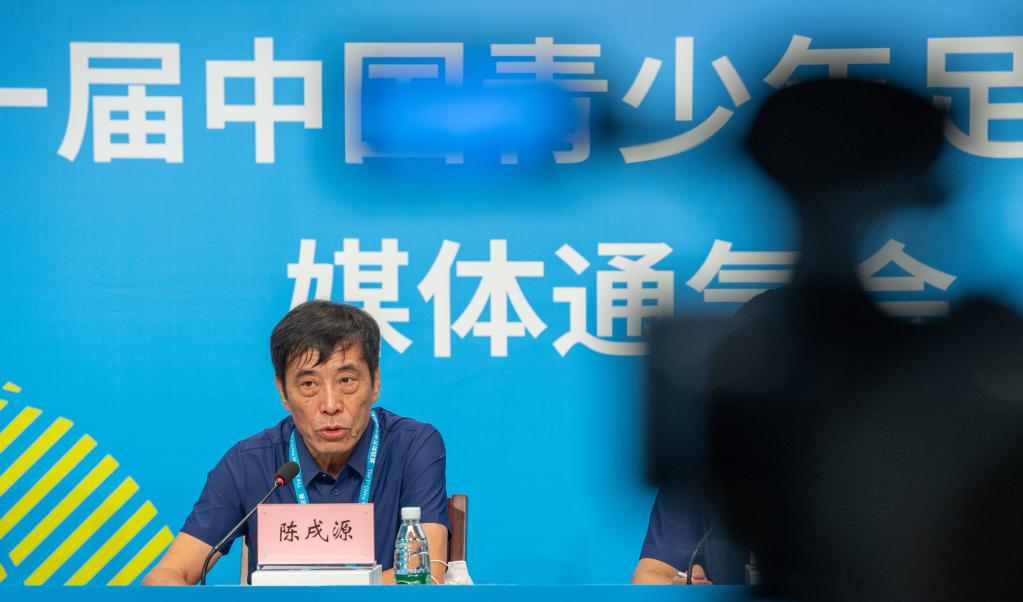 7月10日,陈戌源在第一届中国青少年足球联赛媒体通气会上回答媒体提问。新华社记者江汉摄