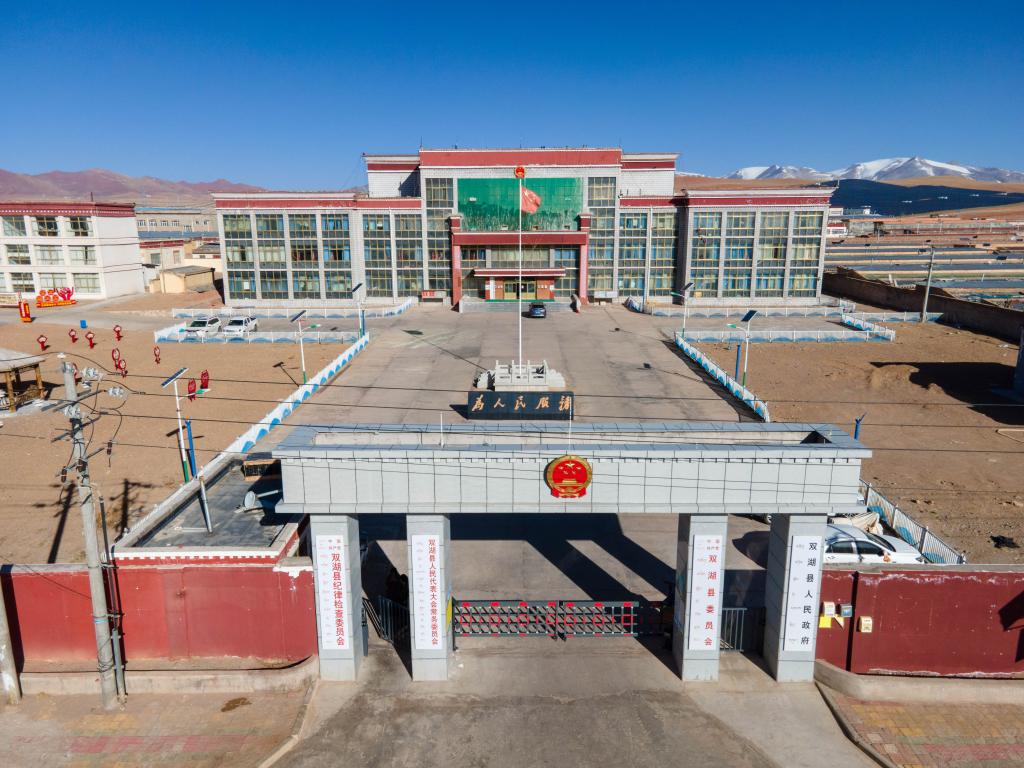 双湖县人民政府(3月27日摄,无人机照片)。新华社记者 周荻潇 摄