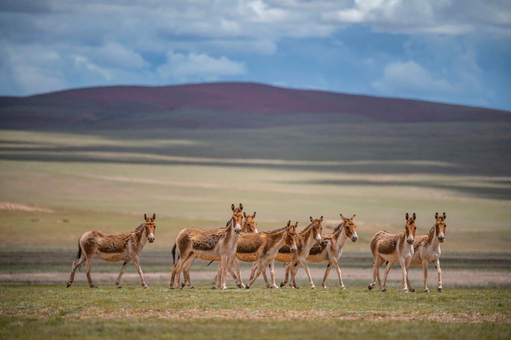 双湖县境内悠闲的藏野驴(7月17日摄)。新华社记者 孙非 摄
