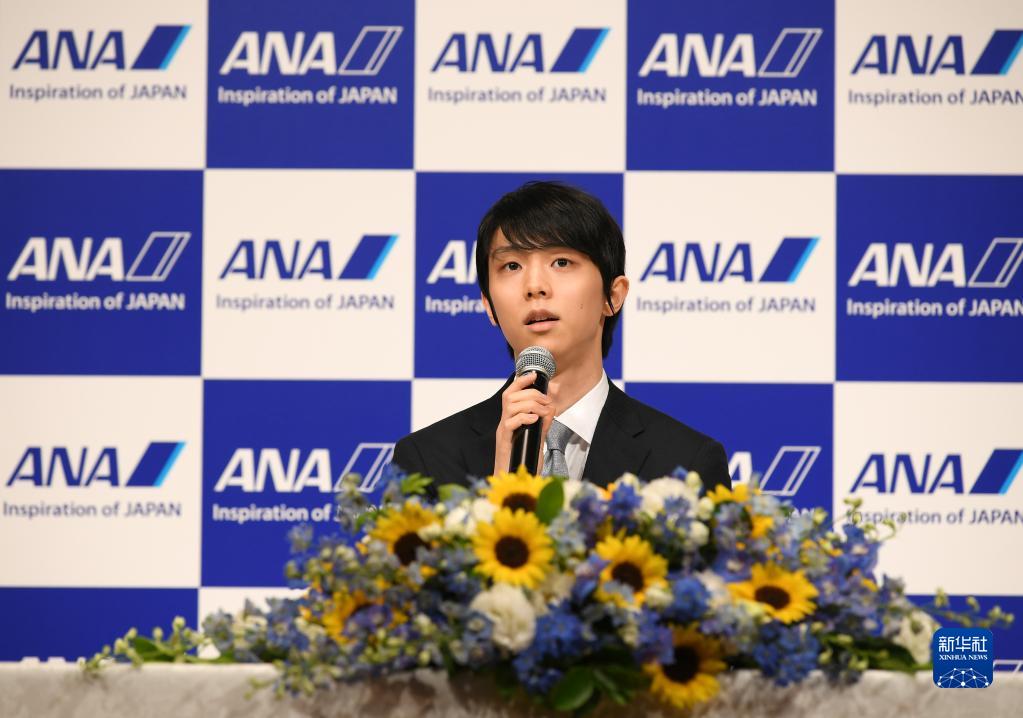 7月19日,羽生结弦在发布会上。当日,日本花样滑冰运动员羽生结弦在日本东京召开新闻发布会。新华社记者 华义 摄