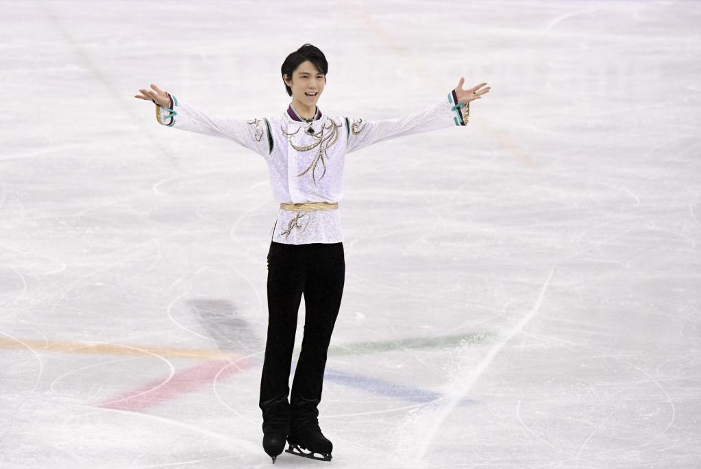 资料图:2018年2月17日,日本选手羽生结弦在平昌冬奥会花样滑冰男子单人滑自由滑比赛中获得冠军。 新华社记者 王昊飞 摄