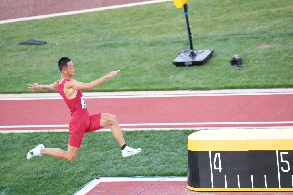 2021年7月31日,王嘉男在东京奥运会男子跳远资格赛中。新华社记者李明摄