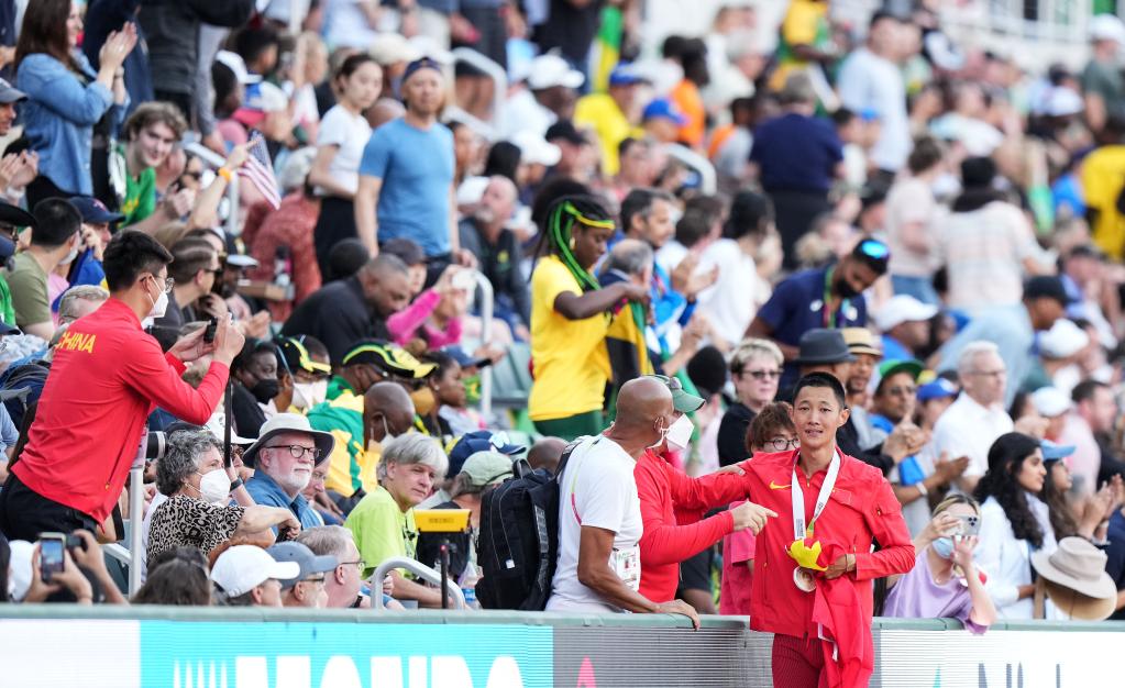 7月17日,王嘉男在2022世界田径锦标赛男子跳远颁奖仪式上。新华社记者王迎摄