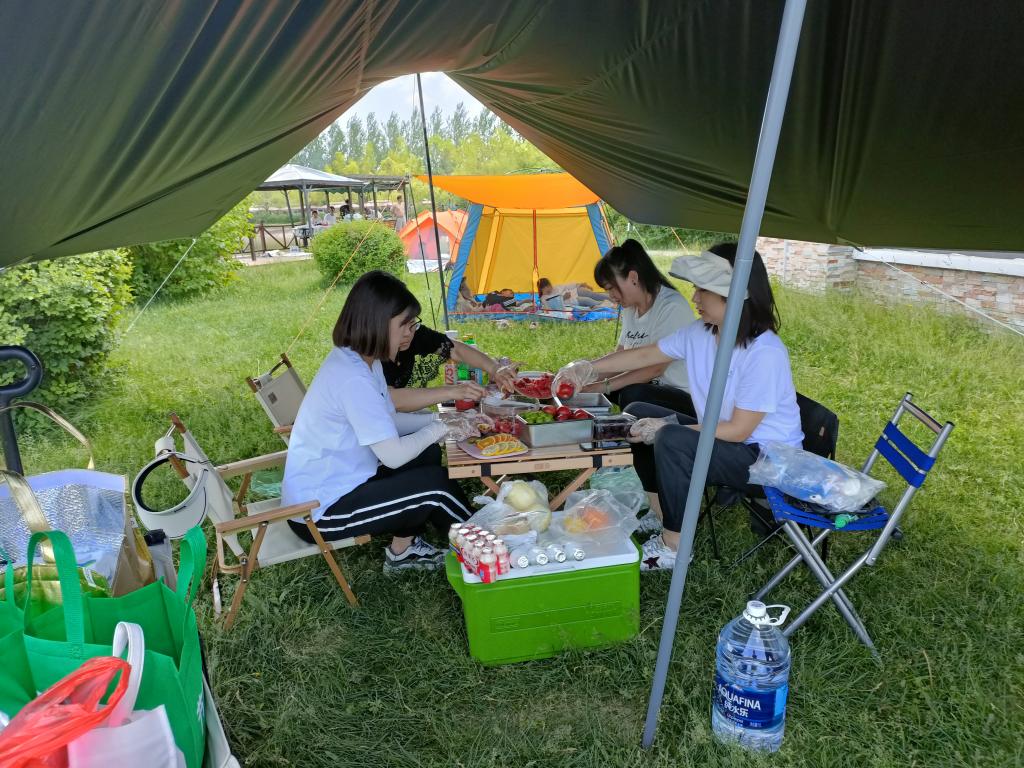 “现在疫情防控常态化了,我们几个姐妹一起带着孩子来露营。周末了,我们来露营地放松一下心情。”正在露营的游客张婧说。张婧和姐妹们共同搭起了一个大大的帐篷,在帐篷里一边品尝美食,一边享受怡人的露营美景。