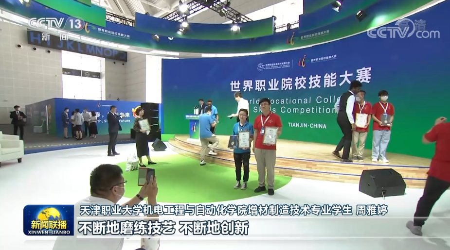 在首届世界职业技术教育发展大会上,世界职业院校技能大赛备受关注。增材制造是一种新兴技术,如今正在被应用于大火箭、大飞机等先进制造业。在这一赛项中,来自天津职业大学的周雅婷团队夺得冠军。工业部件的增材制造考验的是对力学结构、设计建模、精确制造的全方位把握。