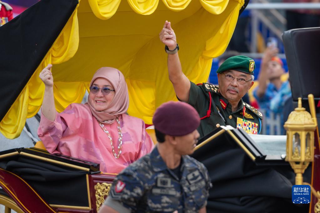 8月31日,马来西亚最高元首阿卜杜拉(右)参加在吉隆坡独立广场举行的马来西亚独立65周年庆典活动。新华社发(张纹综 摄)