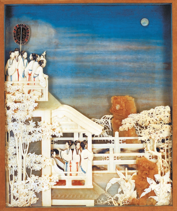 象牙雕《月曼清游图》之“琼台玩月”