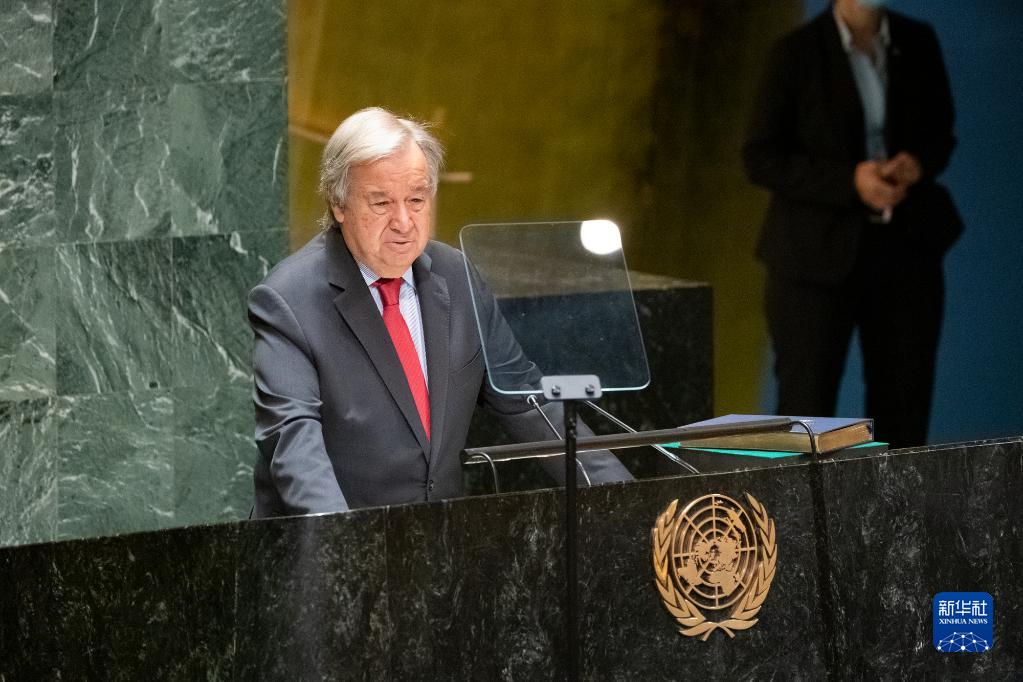 9月12日,在位于纽约的联合国总部,联合国秘书长古特雷斯在第76届联合国大会闭幕会上发表讲话。新华社发(联合国供图/埃万·施奈德摄)