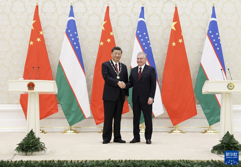 习近平指出,米尔济约耶夫总统向我授予“最高友谊”勋章,充分体现出乌方对中乌关系的高度重视,以及乌兹别克斯坦人民对中国人民的深情厚谊。
