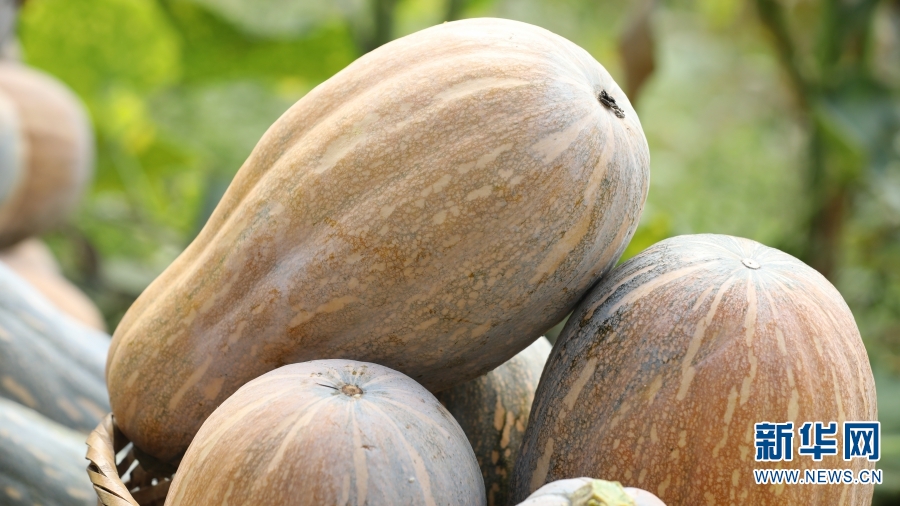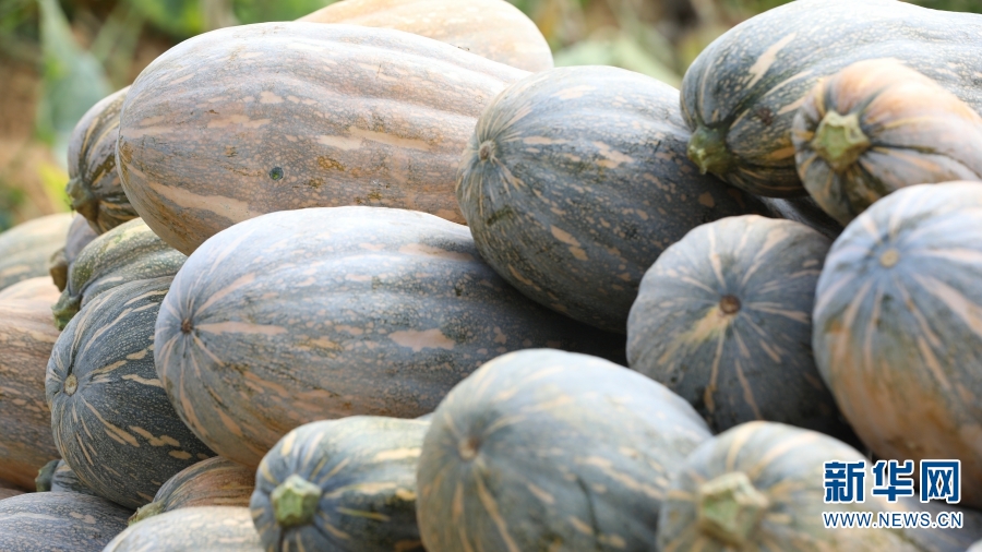 采摘好的南瓜(摄于9月2日) 。新华网发(施甸县融媒体中心供图)