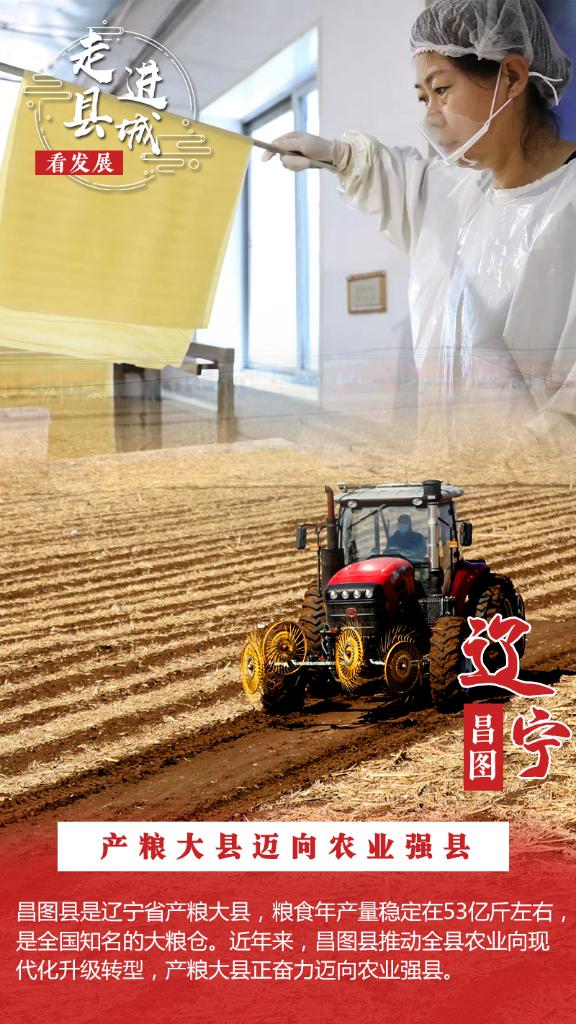 昌图县县长苗宇介绍,昌图县正从农业大县向农业强县迈进,不断延伸农业产业链,提高农产品附加值,加快发展壮大县域经济。