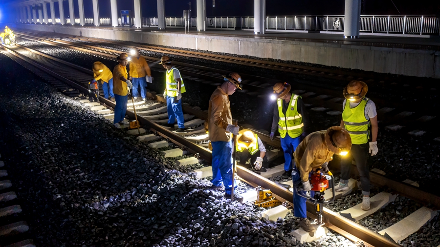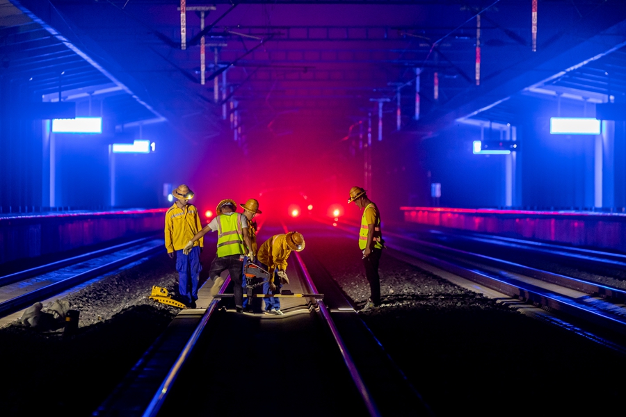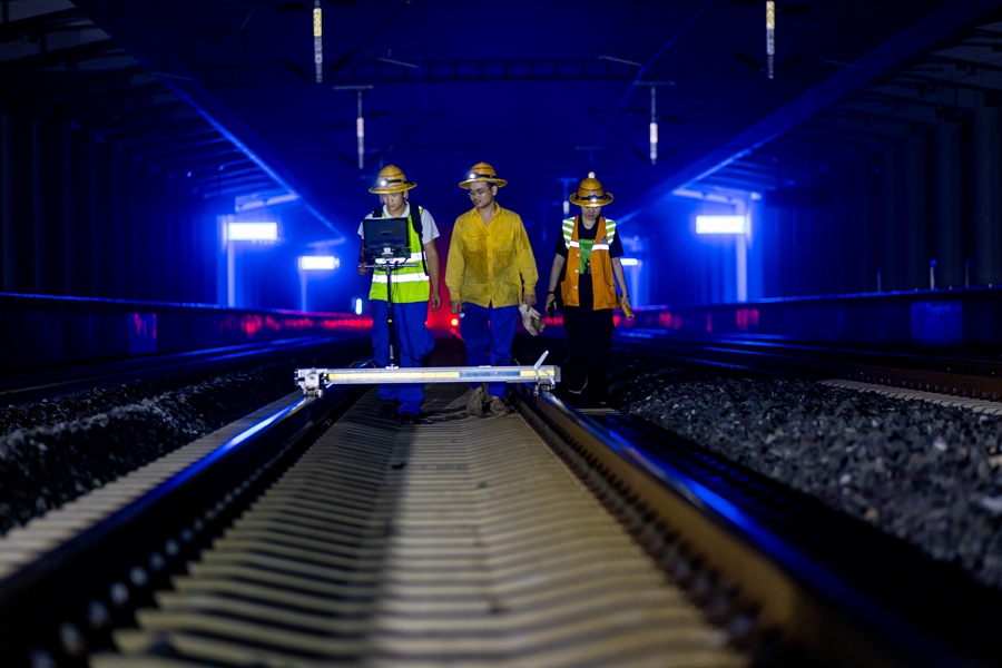 “天窗”是指列车运行图中不铺画列车运行线或调整、抽减列车运行,为施工和维修作业预留的时间。中老铁路开通运营以来,客货两旺,白天列车运行繁忙,“精调师”只能“昼伏夜出”,抓紧有限的“夜天窗”时间,对线路进行集中精调及消缺整治,确保列车运行安全畅通、旅客乘坐平稳舒适。
