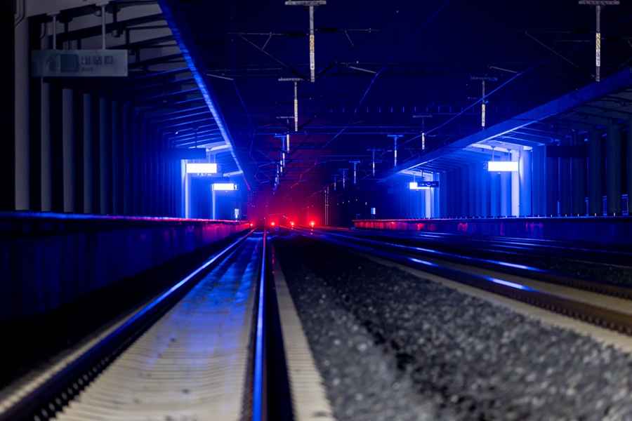 在15名“精调师”的通力合作下,120米的线路精调任务圆满完成,“夜天窗”也即将结束,野象谷站又将迎来一趟趟列车。正是这群平均年龄24岁的“精调师”无数个深夜的精细养护,才保证了线路运行的安全畅通和旅客乘坐的平稳舒适。图为深夜的野象谷站(摄于9月28日)。新华网发(徐章位/摄)