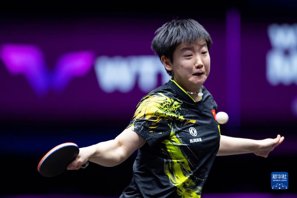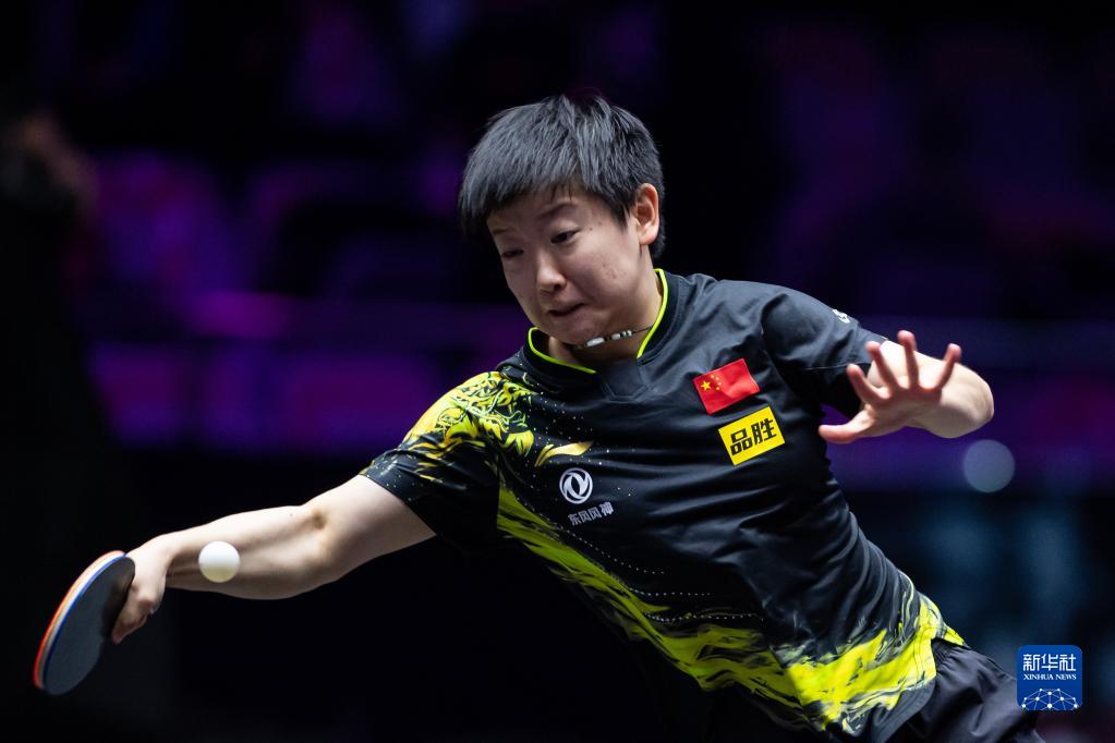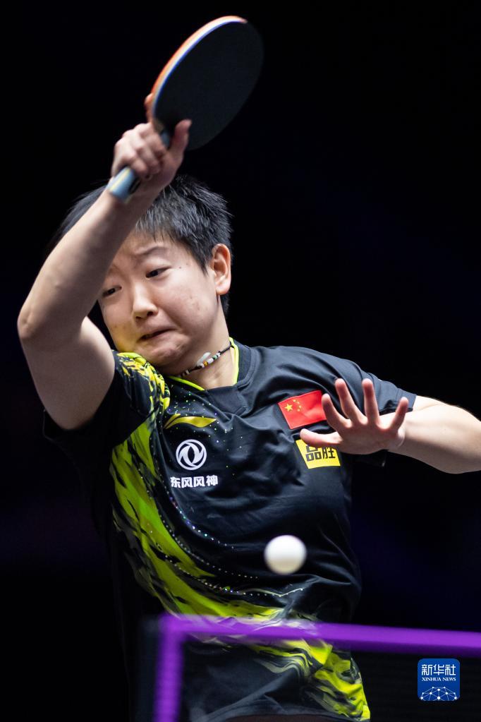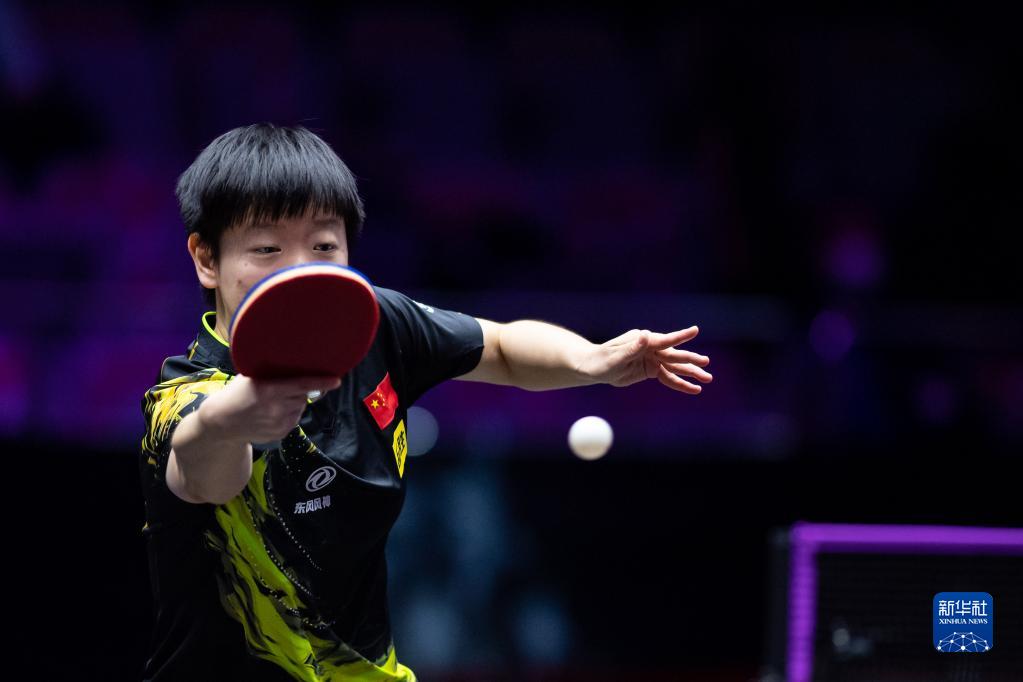 10月20日,孙颖莎在比赛中回球。新华社记者 张金加 摄