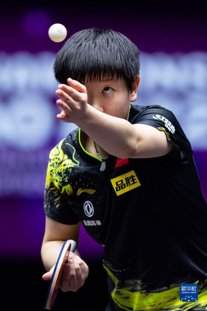 10月20日,孙颖莎在比赛中发球。新华社记者 张金加 摄