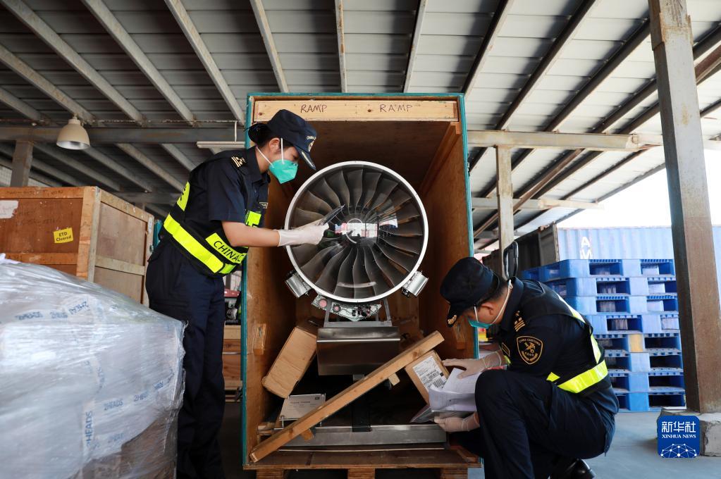 10月26日,拱北海关关员为本届航展首批境外参展物资办理验放手续。新华社发(俞波 摄)