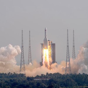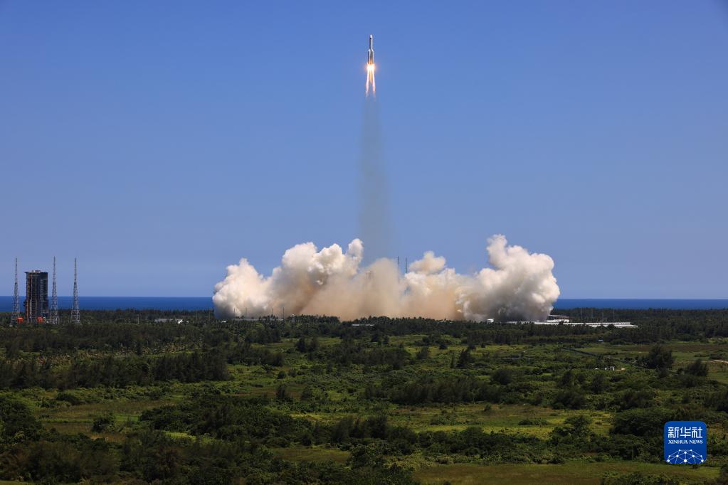 2021年4月29日11时23分,中国空间站天和核心舱在我国文昌航天发射场发射升空,准确进入预定轨道,任务取得成功。新华社记者 周佳谊 摄