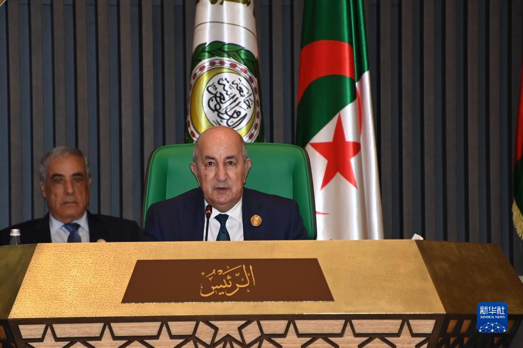 11月1日,阿尔及利亚总统特本在阿尔及尔出席第31届阿拉伯国家联盟首脑理事会会议。新华社发(阿尔及利亚总统府供图)