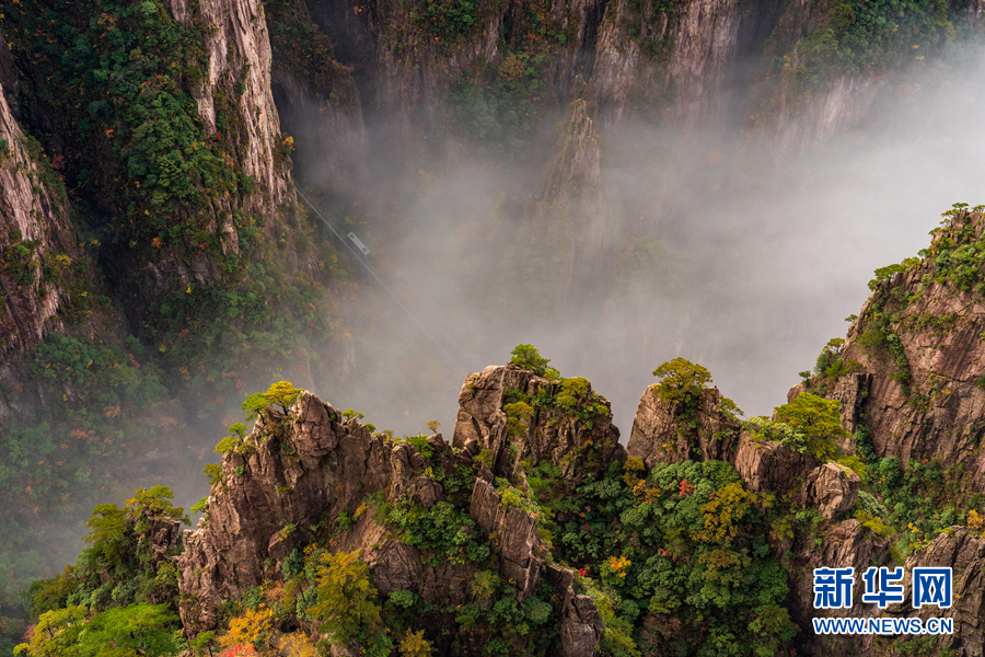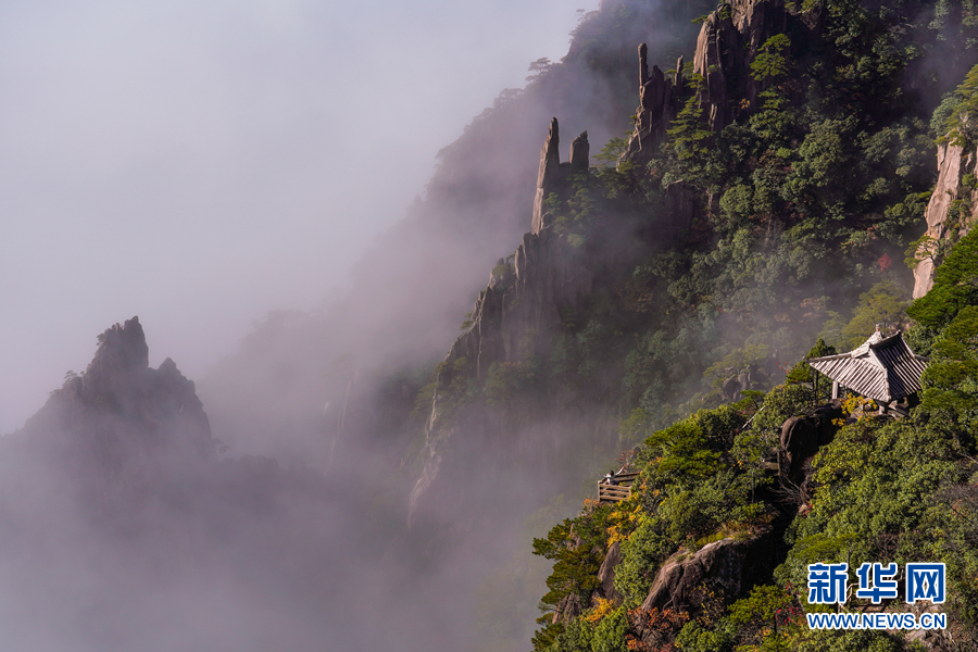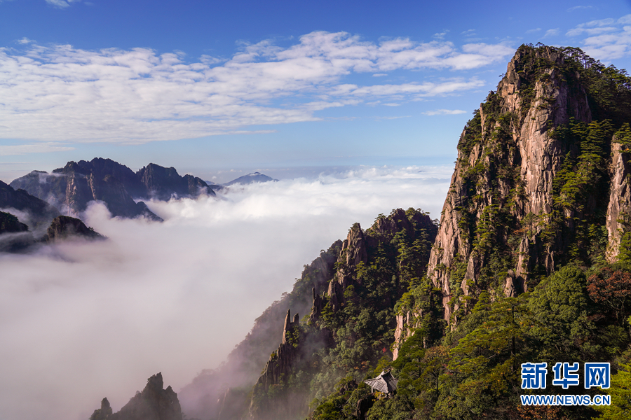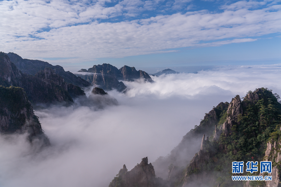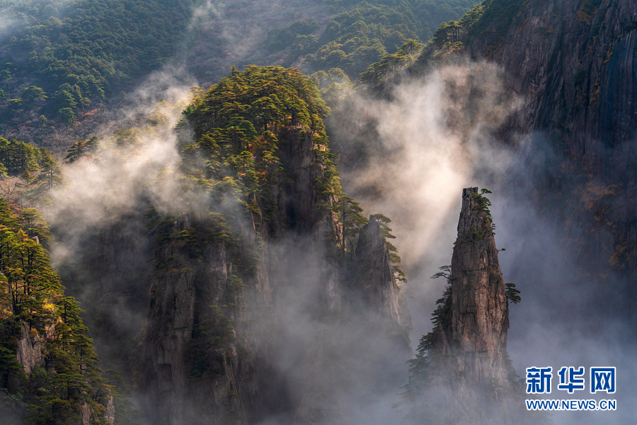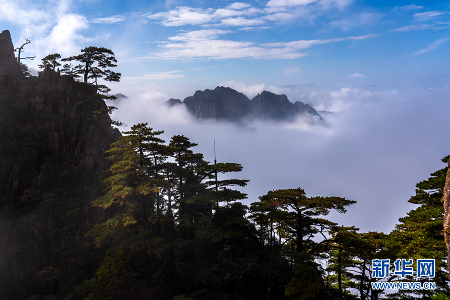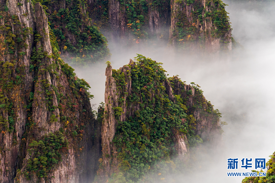 深秋时节,安徽黄山风景区西海大峡谷出现云海美景,形成了一幅壮美的秋景图。新华网发(水从泽 摄)