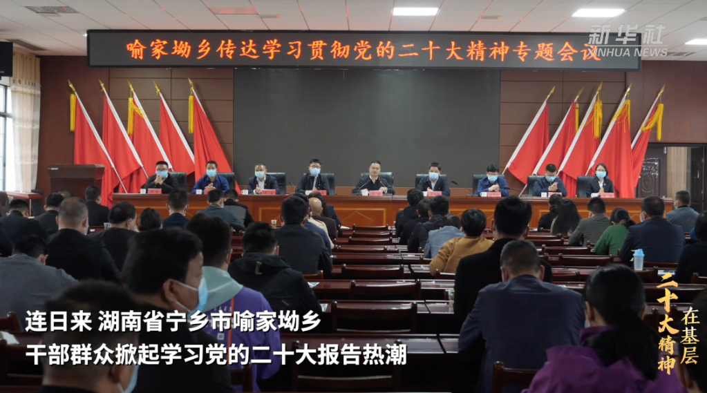 连日来,湖南省宁乡市喻家坳乡干部群众掀起学习党的二十大报告热潮。