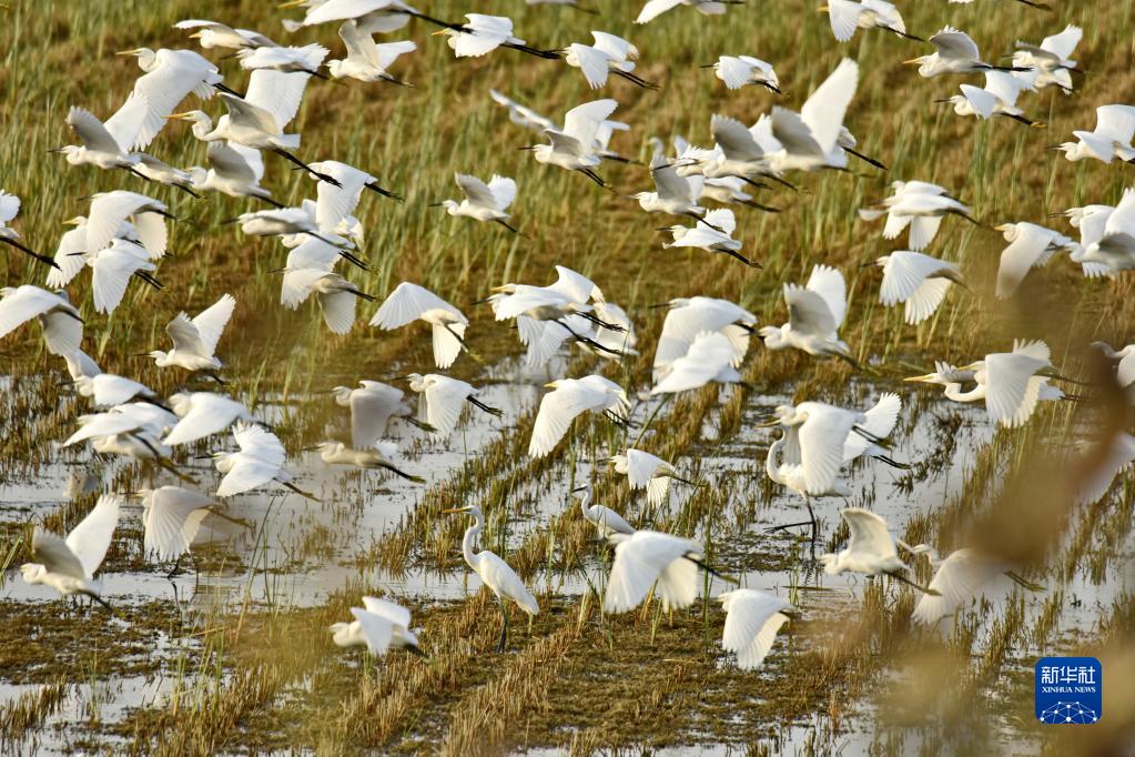 这是在河北雄安新区白洋淀一处鸟类栖息地拍摄的白鹭(2022年9月21日摄)。 新华社记者 朱旭东 摄