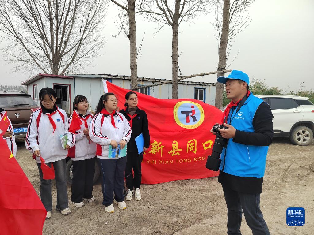 河北雄安新区护鸟志愿者韩战桥(右一)向青少年普及护鸟知识(2022年10月13日摄)。 新华社发