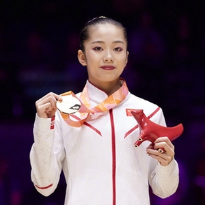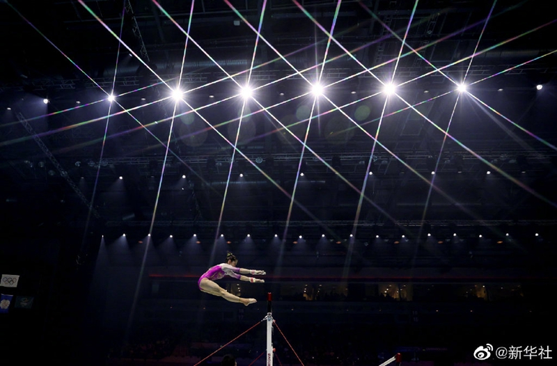 11月5日,在英国利物浦举行的2022体操世锦赛女子高低杠决赛中,中国选手韦筱圆获得冠军。(记者:孟鼎博)