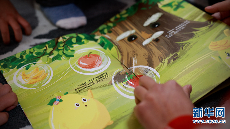 在图书室,老师带着小朋友们阅读梨的绘本(10月20日摄)。新华网 柴静 摄