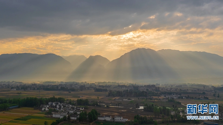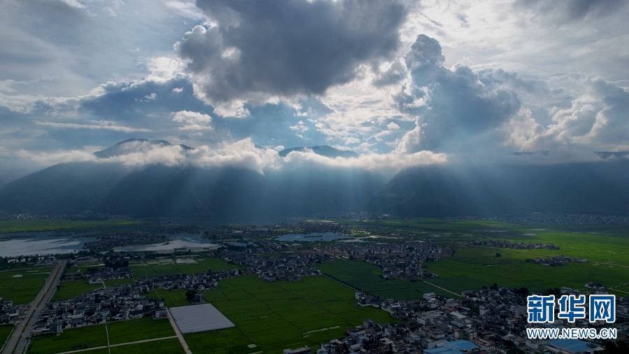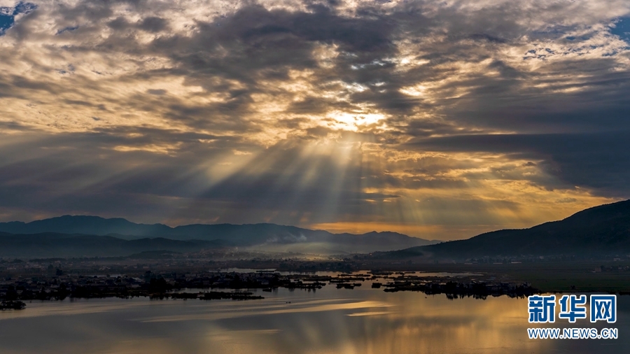 当丁达尔效应出现时,光便有了形状。近日,云南省大理白族自治州洱源县上空多次出现丁达尔效应,在摄影师的镜头下,一束束金色光柱从云层边缘直射下来,洒落到山岭、湖泊、田野之上,十分惊艳。