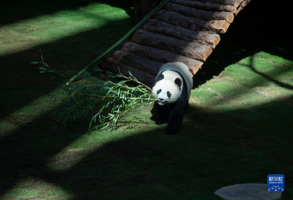 当天在豪尔熊猫馆,记者看到,两只熊猫都有自己专属的生活区,空调恒温,凉爽舒适,“京京”一直在吃新鲜的竹子,“四海”则更钟爱爬树。