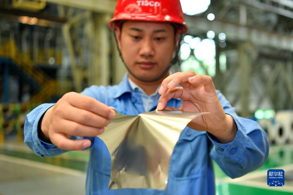 连日来,中国宝武山西太钢不锈钢精密带钢有限公司车间正满负荷生产。一卷卷薄如蝉翼光滑如镜、用手就能撕开的“手撕钢”经过压延、清洗、光亮等一系列步骤自动制成,广泛应用在航空航天、精密仪器、新能源电池等高端设备制造行业。
