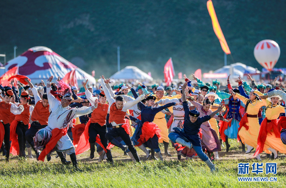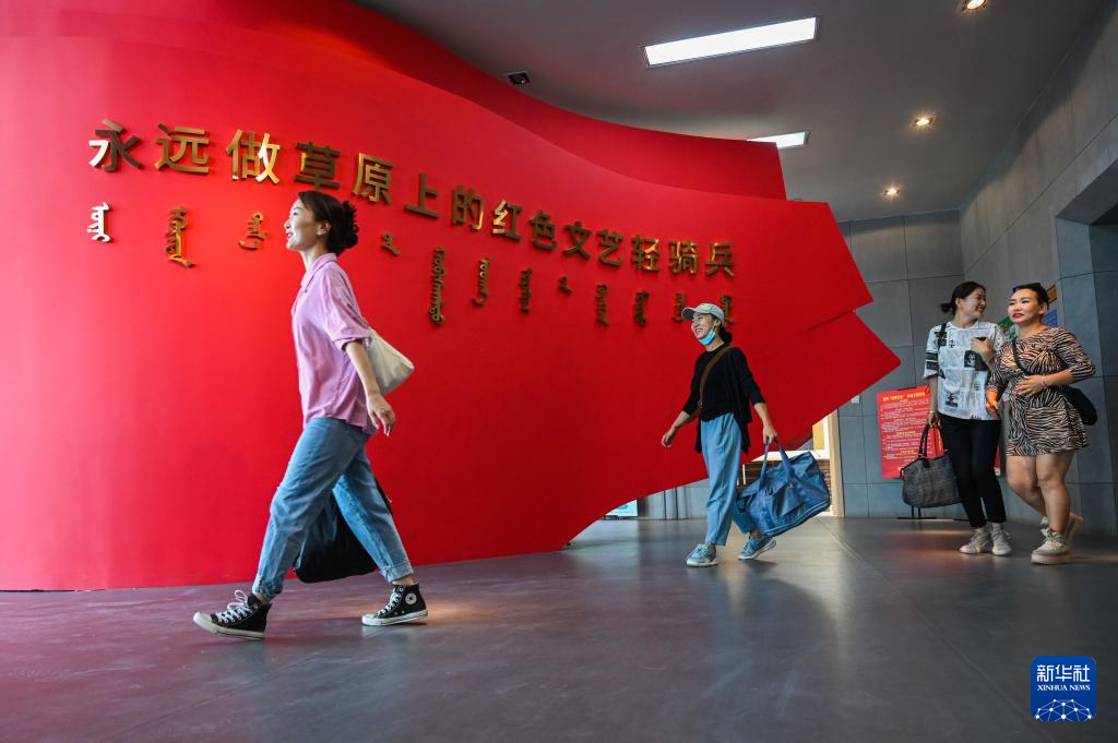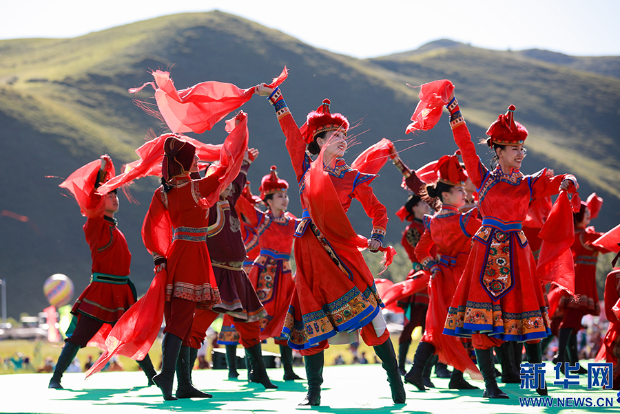 2022年8月8日,乌兰牧骑队员们在第九届内蒙古自治区乌兰牧骑艺术节开幕式上进行文艺表演。新华网 发(丁根厚摄)