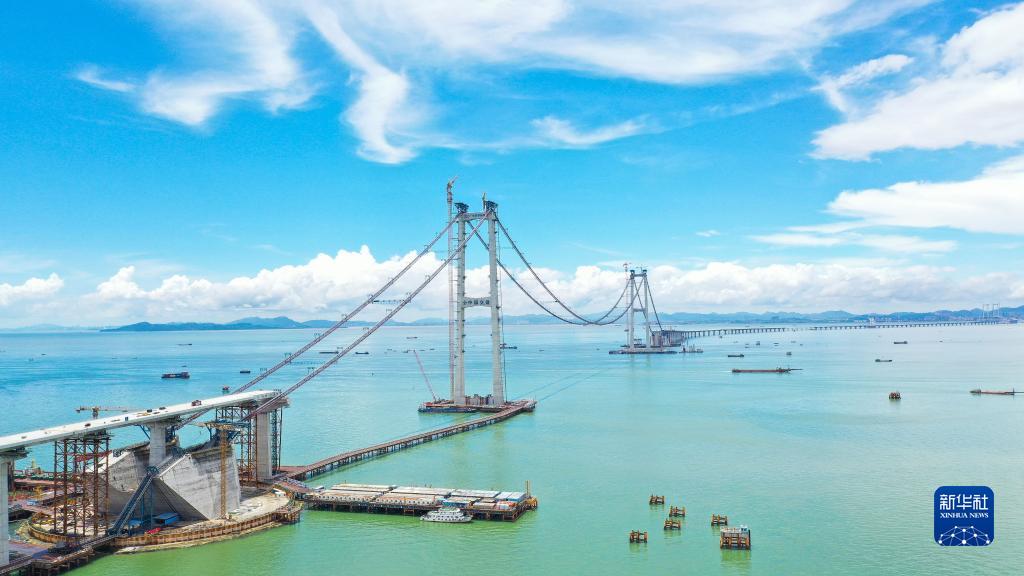 这是深中通道关键控制性工程伶仃洋大桥的建设现场(2022年10月16日摄,无人机照片)。新华社发(张政 摄)