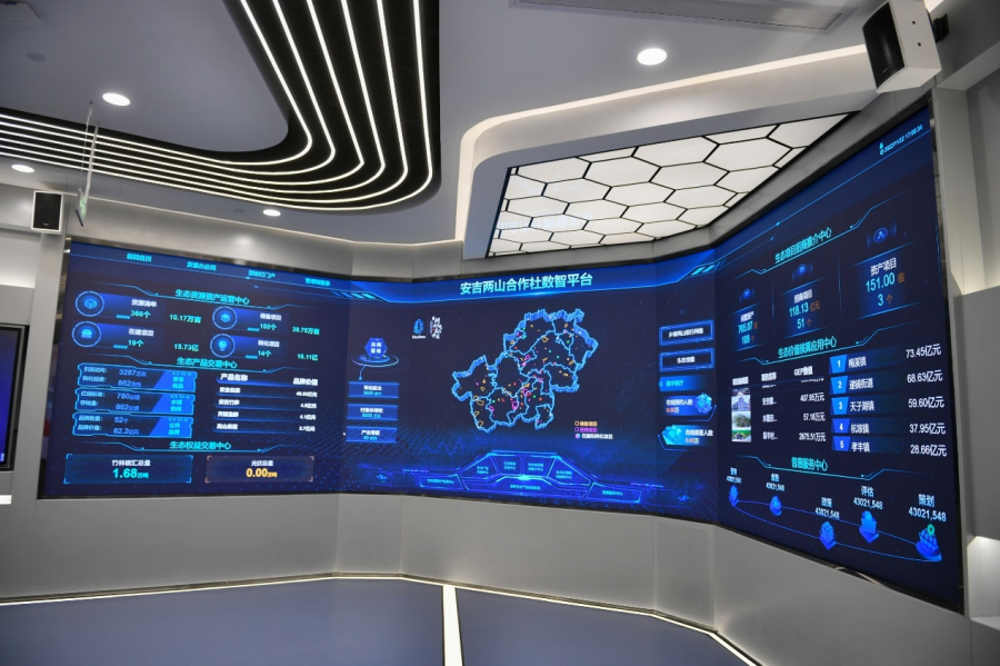 安吉两山合作社竹林碳汇交易平台。新华网发 汤华生摄