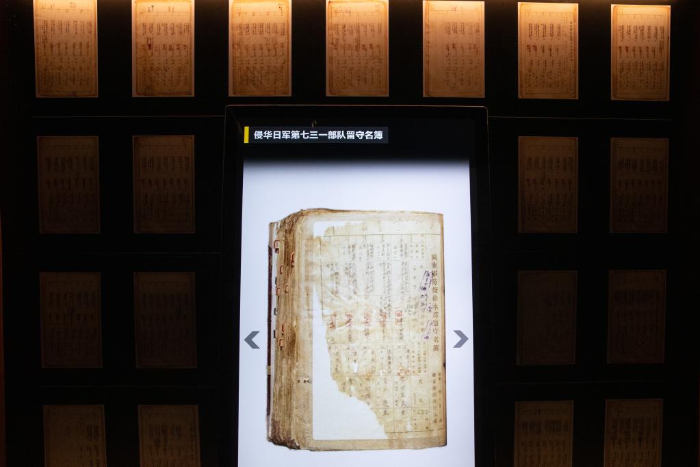 在展厅的玻璃柜内陈列着一页页泛黄的名簿,封面上用日语写着“关东军防疫给水部留守名簿”,多媒体展示屏上,部队成员的签名、人员来源、身份构成、职级、亲友信息、印章等清晰可见。