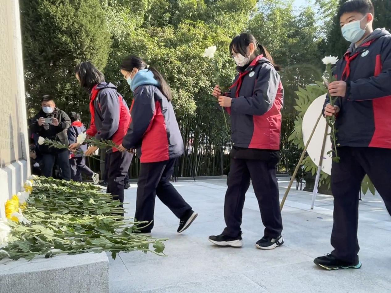 学生献花表达哀思 新华网 佘灵 摄