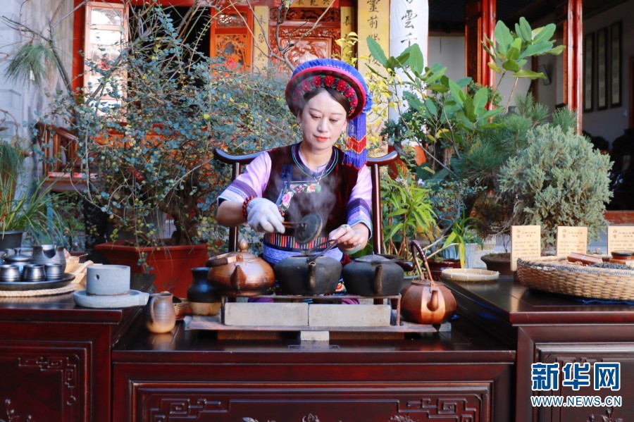 白族三道茶制作流程(12月7日摄)。新华网发(赵正银 摄)