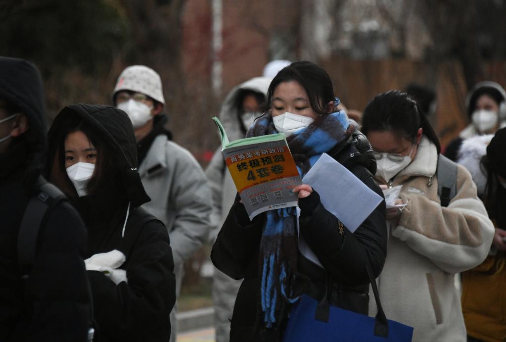 12月24日,在北京外国语大学考点,考生排队准备进入考场。新华社记者 任超 摄
