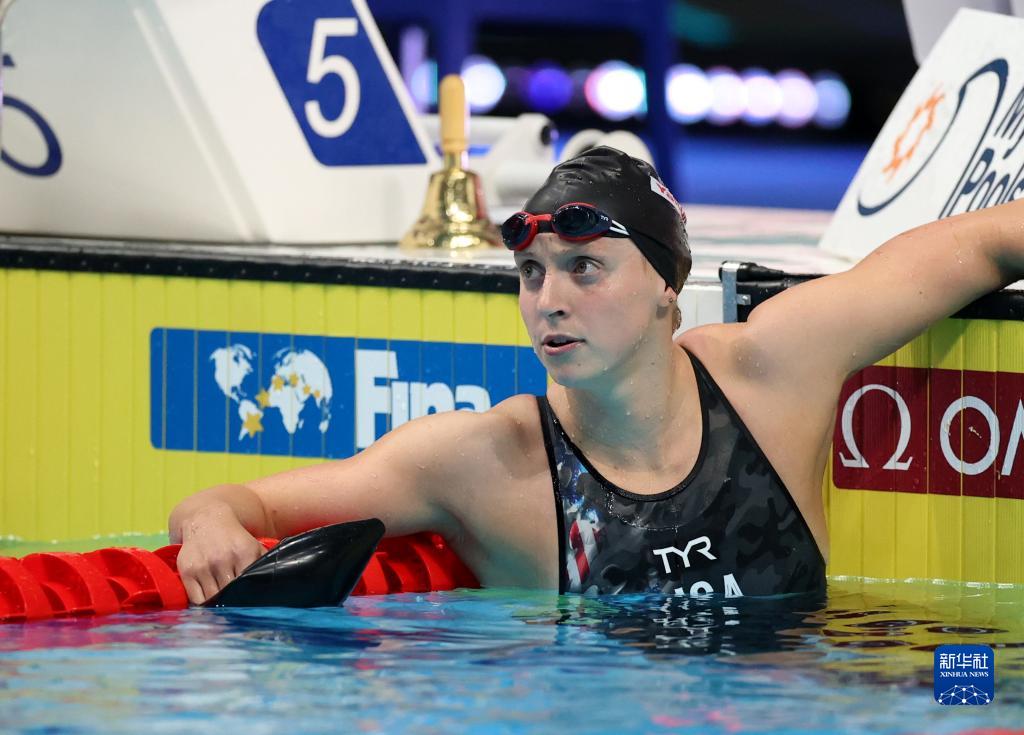 这是2022年6月24日,莱德茨基在布达佩斯游泳世锦赛女子800米自由泳比赛后。新华社记者 李颖 摄