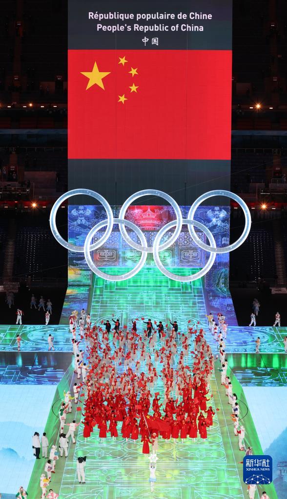 这是2022年2月4日晚,中国代表团在第二十四届冬季奥林匹克运动会开幕式上入场。新华社记者 杨磊 摄