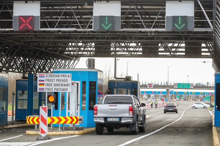 1月1日,车辆在克罗地亚与斯洛文尼亚边境的布雷加纳边防检查站通行无阻。新华社发(Pixsell图片社/卢卡·施坦茨尔 摄)