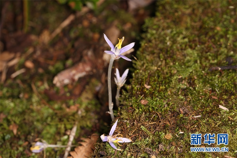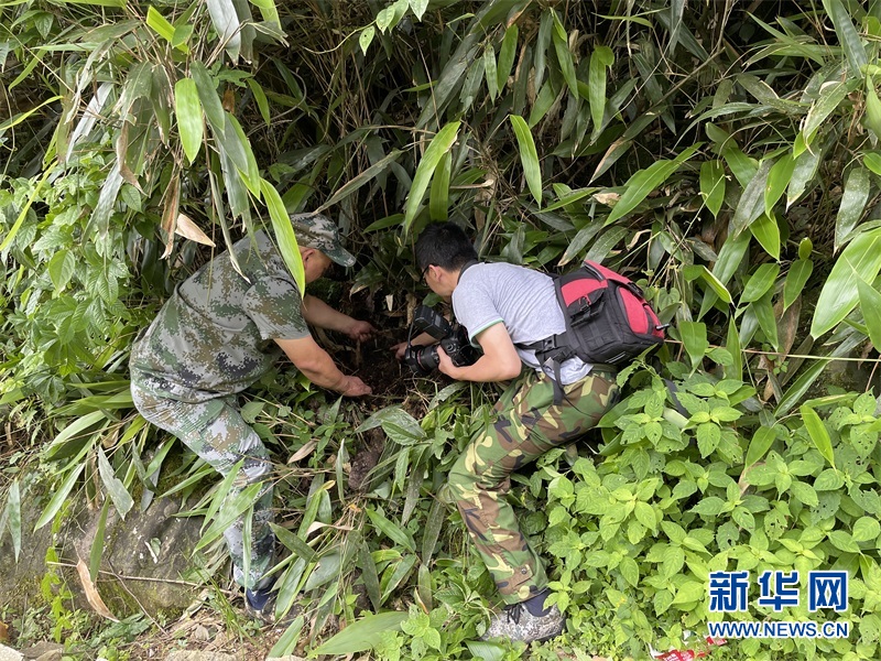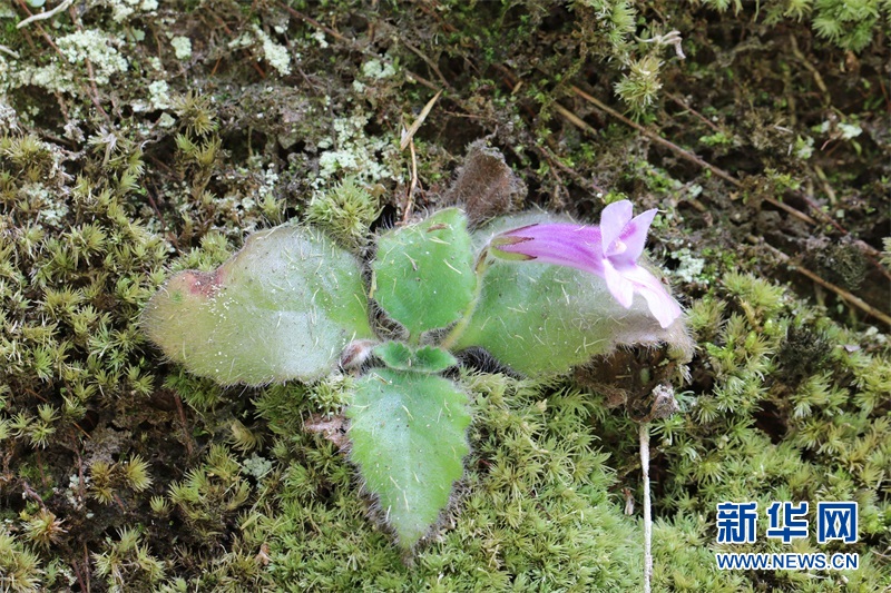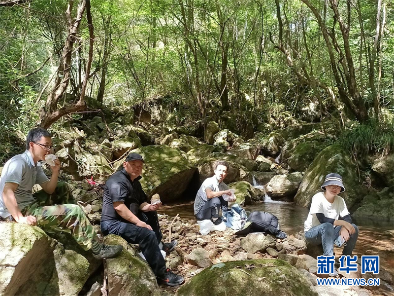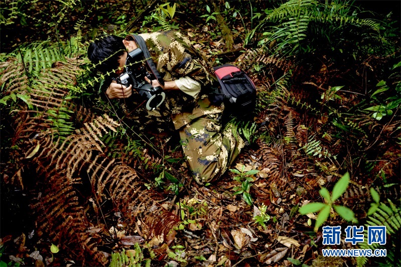 刘西在野外用单反相机拍摄植物的形态特征。新华网发