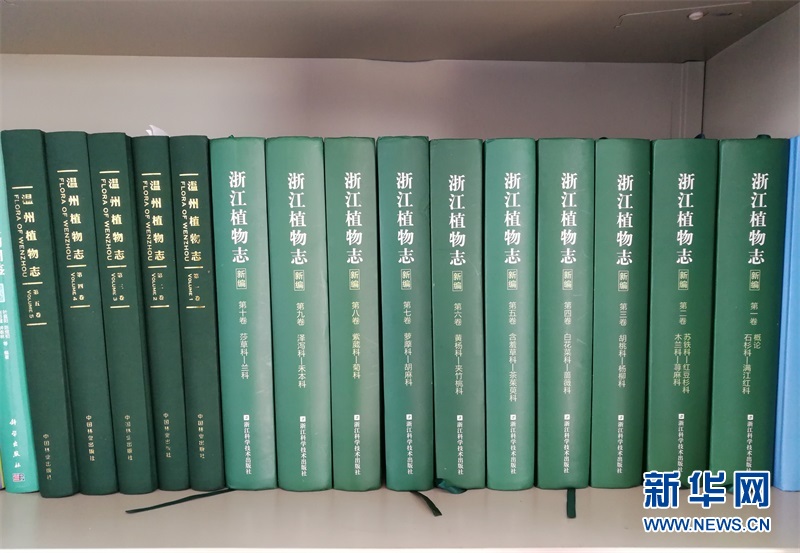 书架上的浙江植物志,这是刘西最常用的书。新华网发