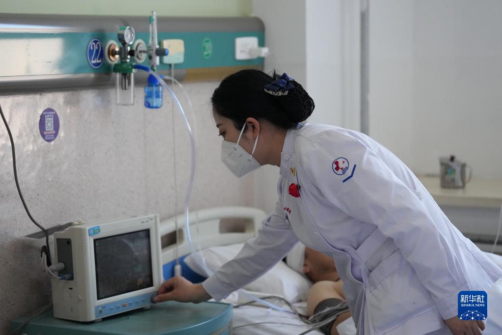 1月16日,盘锦市中心医院护士查看受伤人员情况。新华社记者 潘昱龙 摄