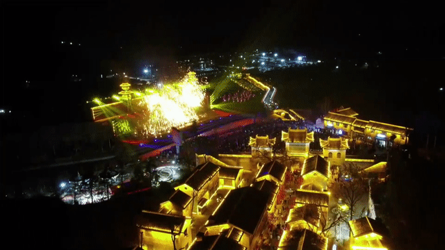 打铁花起源何时不得而知,至少在明清时期就已非常流行。“花”“发”谐音,打铁花取“打花打花,越打越发”之意,象征事业发达兴旺。春节期间打铁花,铁花绽放发出的火光寓意着一年都红红火火,瞬间拉满年味氛围感。